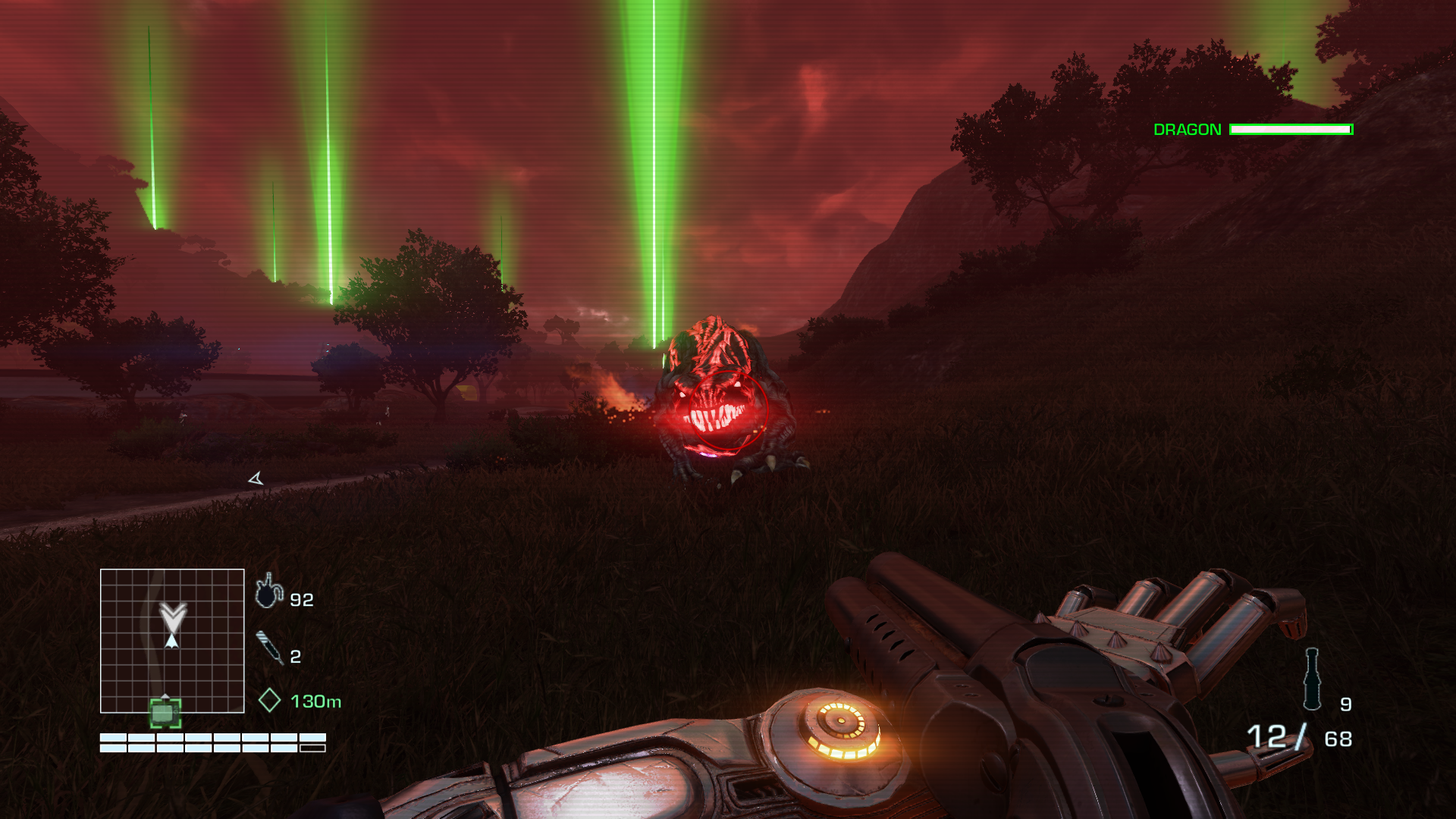 The island of Blood Dragon is a dark and dreary place where red clouds fill the sky, lightning flashes, and it is always night. Neon permeates from every one of Blood Dragon’s pores. Weapons, enemies, garrisons, and even blood dragons themselves glow with such passion that you can’t help but smile and take it all in.
