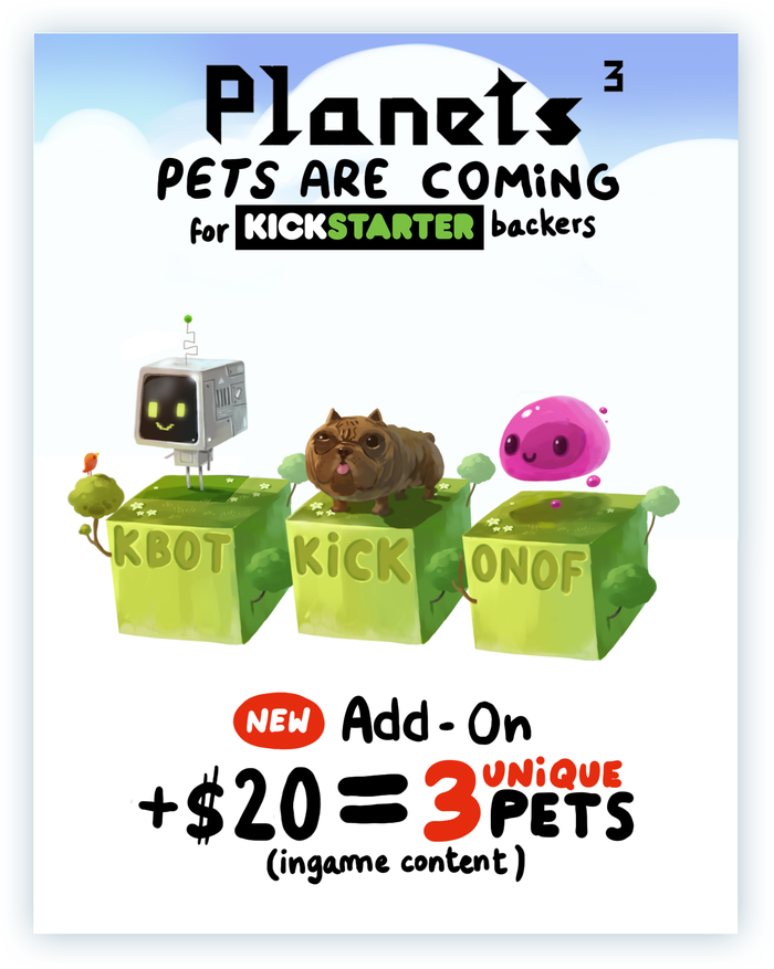 Would-be and current backers may now add an additional $10 for an extra digital download to give to friends and family.  Add an additional $20 and backers get 3 pets that have unique abilities to help players early on in the game.