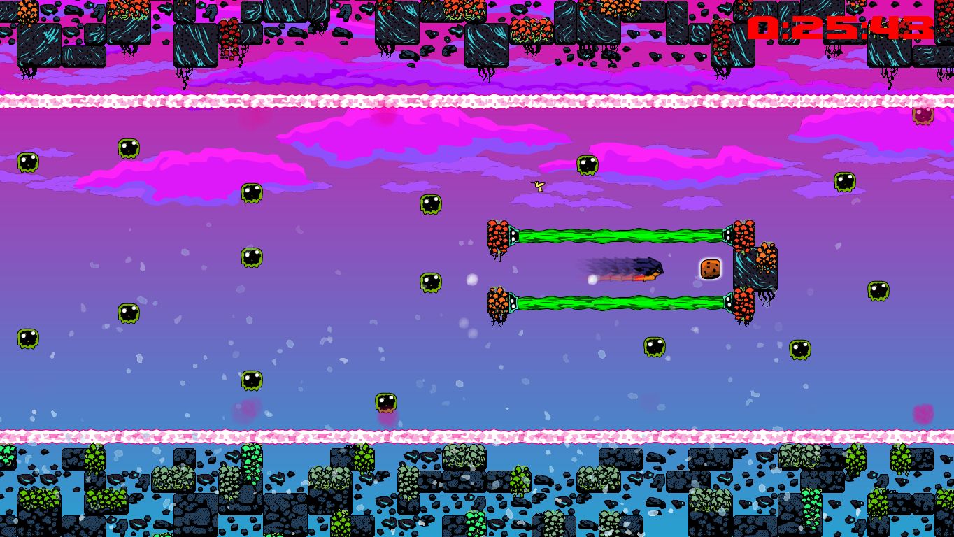 An inspired and frenetically-paced 2D platformer, Fenix Rage tests players’ ability to run, jump, and dash their way through a maze of dangerous obstacles, across hundreds of lightning-paced levels, all in an effort to track down a shadowy villain.  Loads of different enemies, slick retro-inspired music, vivid level landscapes await gamers with the mettle to play. Players will struggle mightily to climb the Leaderboard with the best time and fewest deaths and then rub it in the face of their friends.