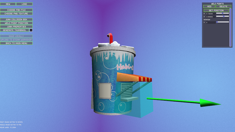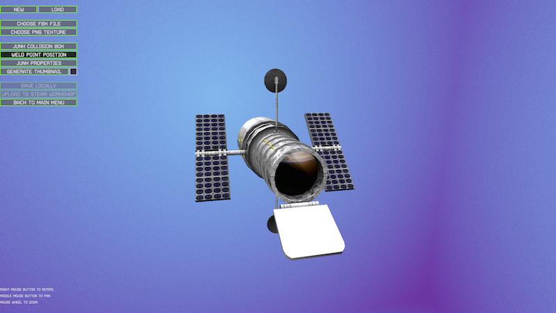 For creators, an easy-to-use in-game editing interface will allow creators to import FBX models (exportable from many popular 3D modeling packages), select a custom texture, assign collision volumes, weld points for attachment to Habitat space stations, and set properties including mass and resource production. The created item can then be saved locally for use in-game or shared out with Steam Workshop so that others can download it and use it in their game.