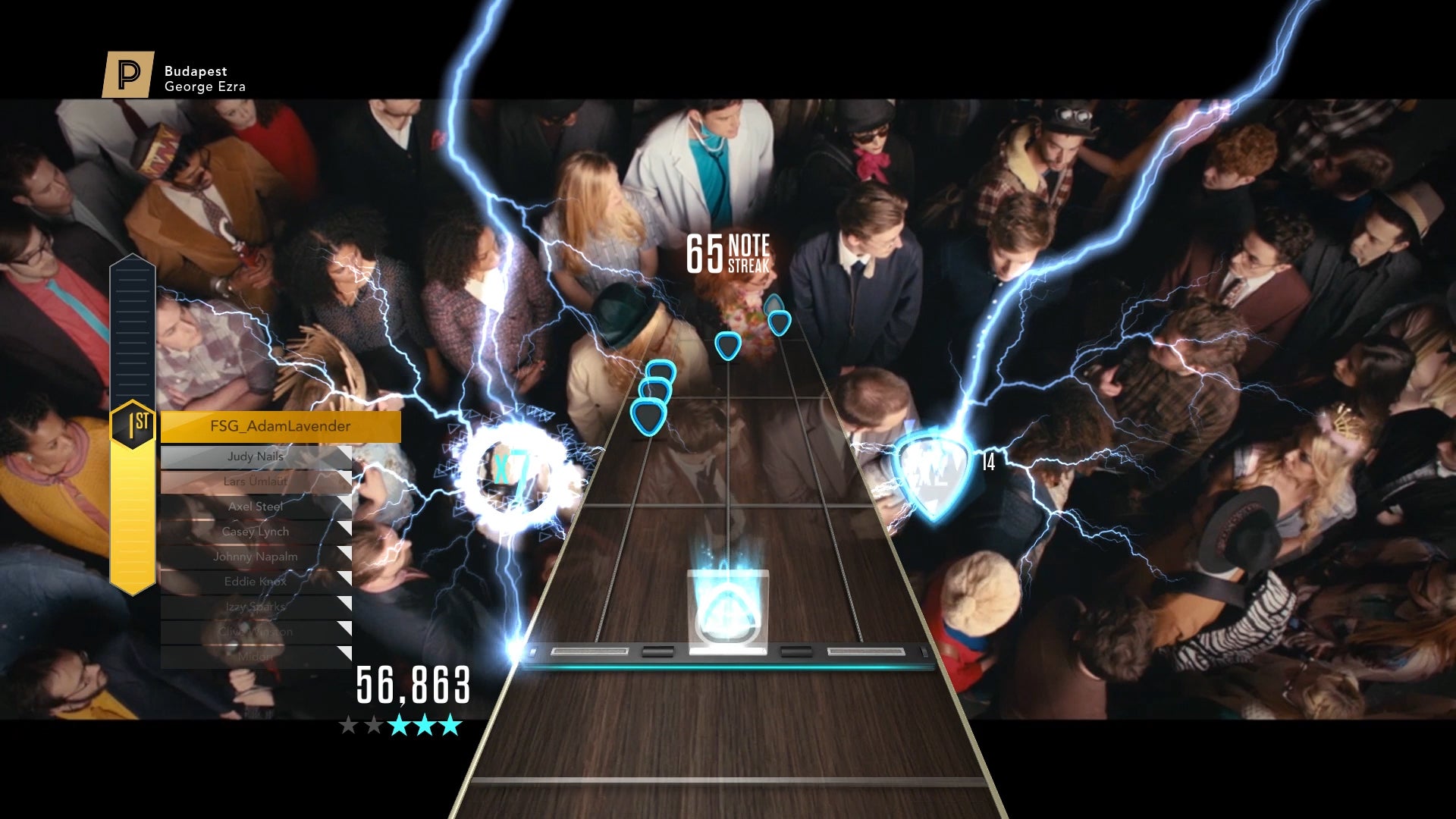 In general, new playable music will arrive in GHTV first as Premium Shows. To access most Premium Shows, players can complete the in-game challenge of achieving at least three stars on three different tracks in the GHTV channels or in the catalogue. And, by playing a Premium Show, players have the chance to earn in-game prizes such as status and coin boosts, unique player cards or note highways to show off their rockstar status online. Generally, after a Premium Show ends, the songs will be added to the on-demand catalogue, and then they will enter the regular channel rotation.