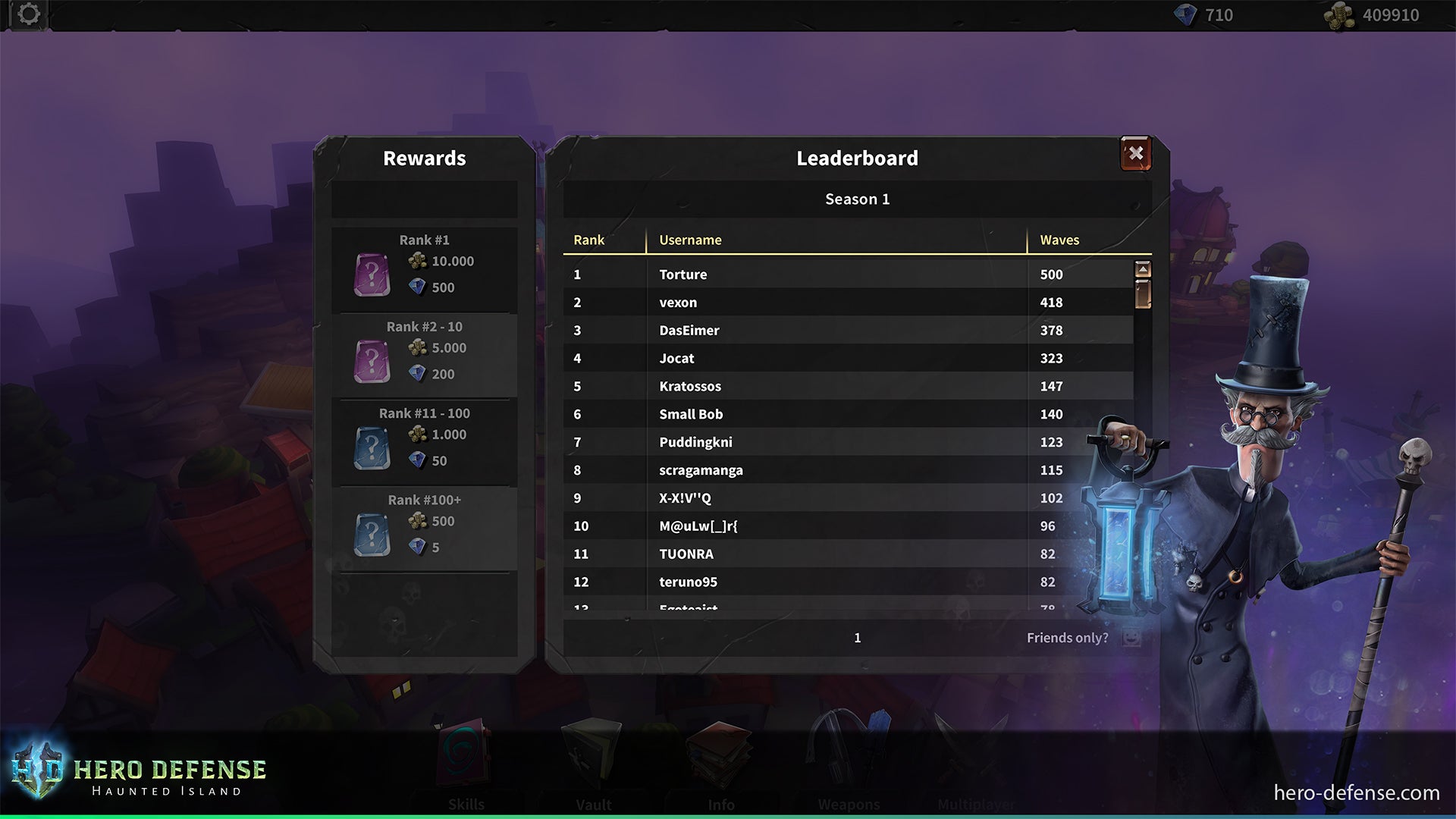With the launch of multiplayer in Hero Defense – Haunted Island, developer Happy Tuesday will begin their first Multiplayer Season, a week-long event where players can compete in ranked matches to claim the title of ultimate champion. Multiplayer Seasons will be held each and every week from the release of the multiplayer update, and progress will be reset at the end of the season preceding the next.
