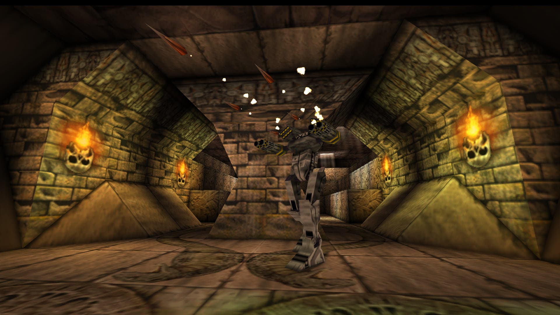 That is of course true here, but it’s important to understand that the way games like Forsaken made system and hardware calls was very different from today’s games, and that means they can still be demanding in ways you wouldn’t anticipate. This problem could be solved by re-engineering the game with a modern set of tools (like Unity or Unreal), but doing so would be trying to recreate and imitate. Instead (as I understand it) Forsaken Remastered uses the custom Kex engine to re-implement the original behavior in a way that combines the best of both worlds; more or less “original” code running so that the all of the developer’s intent remains intact, in a way that can interact with modern hardware. As such, the performance is screamingly fast and everything looks and feels great. Of course, models are low-poly and blocky, and textures, though crisp and clear, are not nearly as detailed as what you get in a contemporary game, but this all ensures the game remains faithful to its roots, and that playing it feels like what you remember Forsaken and games of the late 90s looking and playing like, rather than the muddy reality of how things actually were.