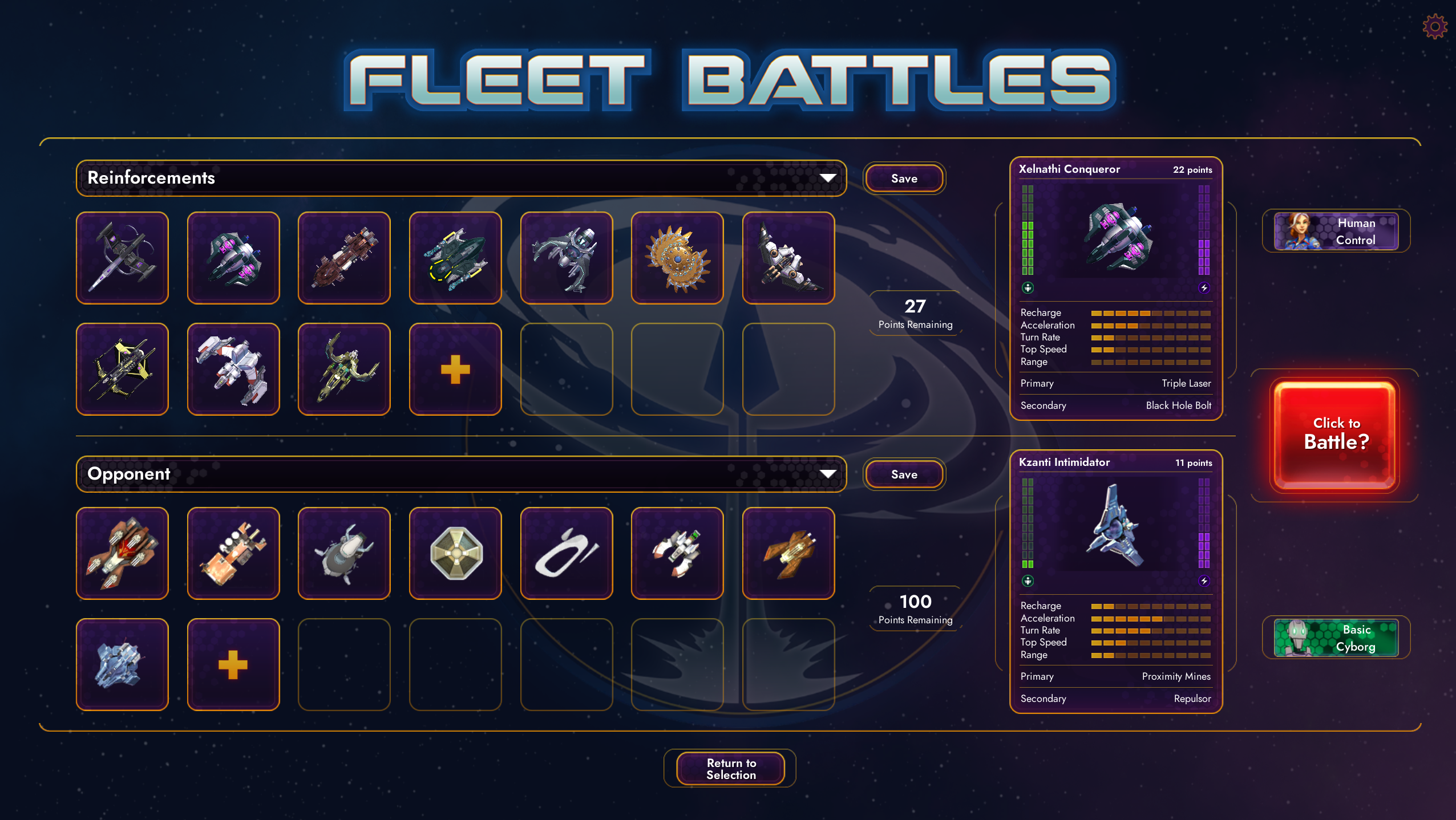 Star Control: Origins also includes a combat mini-game called Fleet Battles in which players assemble fleets of ships and take them into combat either against the computer or against other players online. The free Reinforcements DLC nearly doubles the number of ships available to choose from by default.