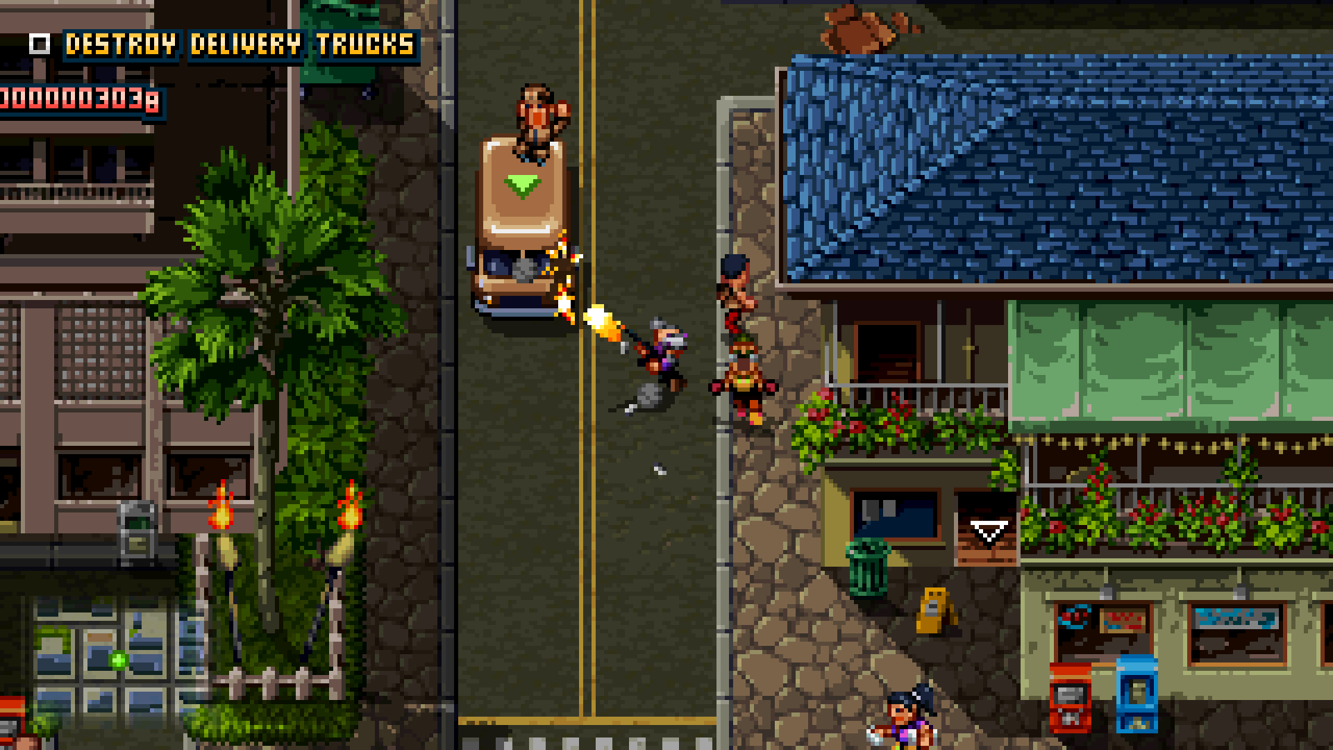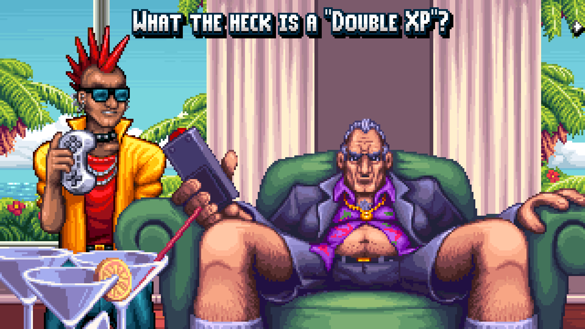 Brian Provinciano’s follow-up to Retro City Rampage is finally here. Shakedown: Hawaii bumps up the bits from 8 to 16. This time around Vblank drops the references, the homages, and has made a game that stands on its own, more so than its spiritual predecessor. Shakedown: Hawaii still offers a Grand Theft Auto-style sandbox experience that can be as chaotic as you make it, but this time it’s all about making the most money imaginable. And it won’t be long before you’re your own Scrooge McDuck, albeit a lunatic who’s grip on reality is only held on by the almighty dollar, and willing to kill for it.