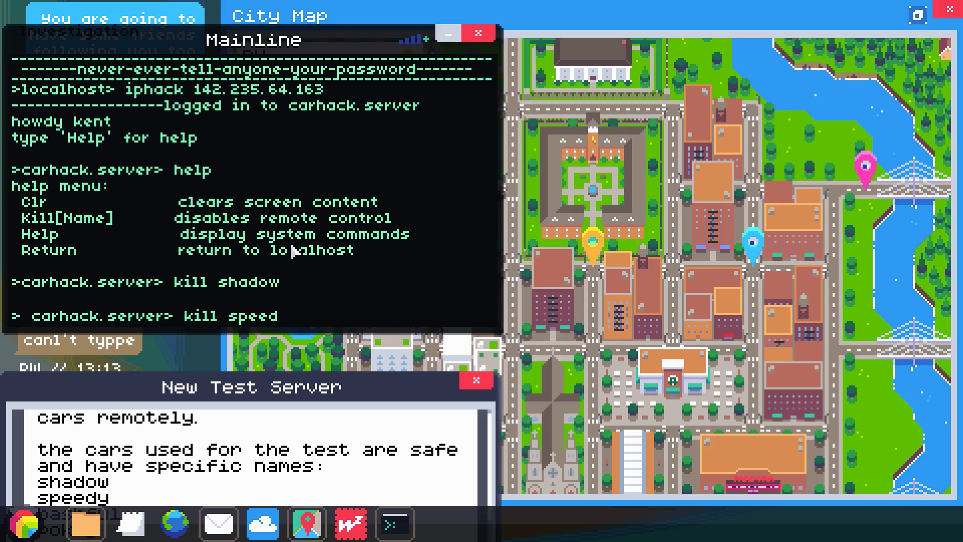 Playing the game on Nintendo Switch is a particularly interesting experience. Mainlining was originally designed for PCs with a keyboard and mouse attached, so translating the experience to a game console is almost asking for trouble. After all, how can you hack at a terminal without a keyboard? The solution comes in the form of a clever on-screen virtual keyboard, which aesthetically fits right in with the rest of the game’s pixellated, faux-windows desktop.
