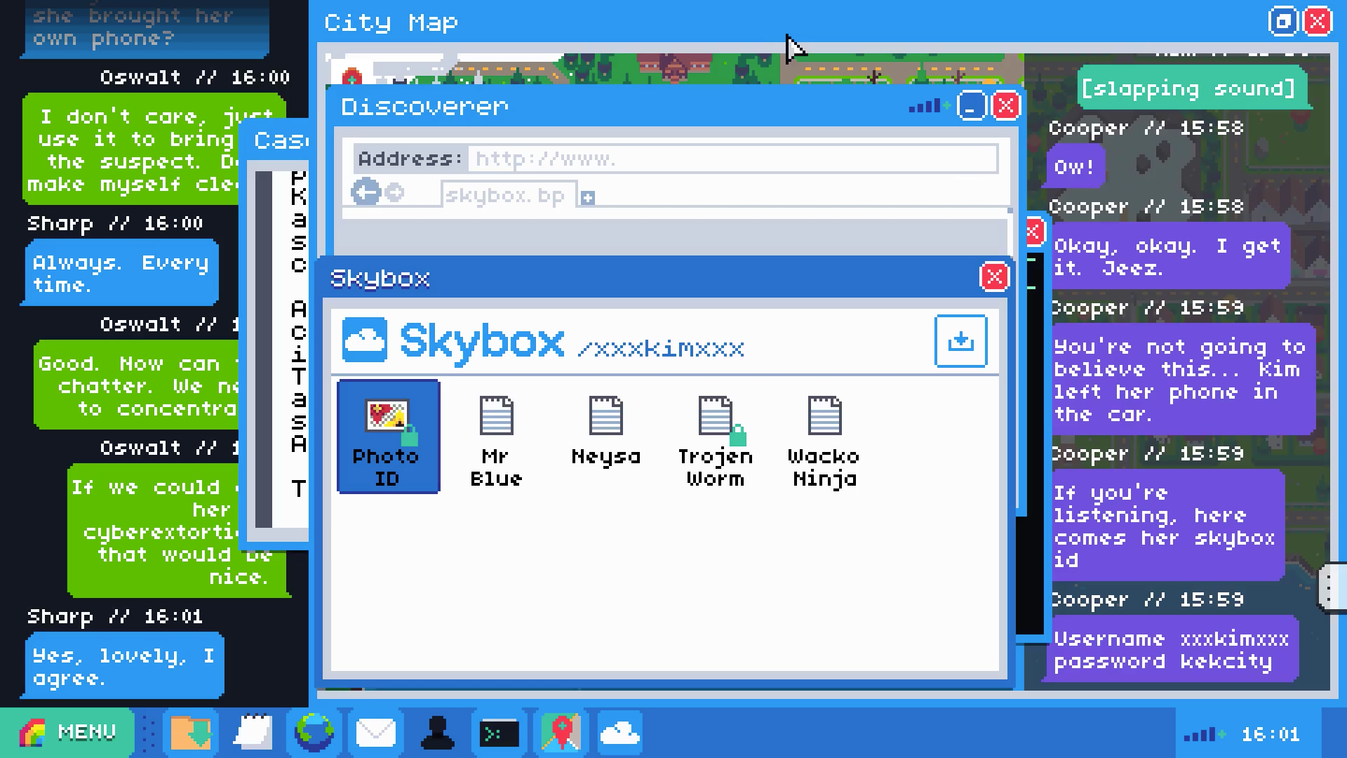 The story unfolds over the course of discrete Cases, in which you’re tasked with uncovering the identity of some online ne’er do well, extracting the proof of their crime, and sending the paddy-wagon to collect them from where ever they’re currently hanging out. Even from the beginning, solving cases means there’s some actual detective work and deductive reasoning required, and you’ll find yourself dipping in and out of servers, following leads and to uncover more details and ultimately piece things together.