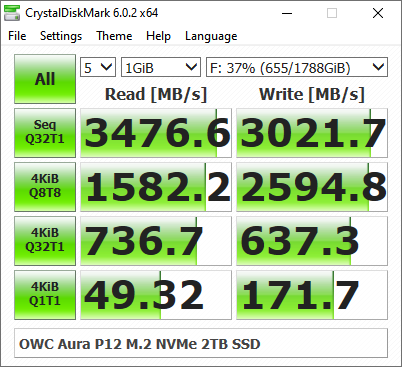 The Aura P12 over provisions by 7% to increase performance, it’s also a measure used to increase durability and longevity. It also has 1920GB of usable capacity, which is on-par or better with most out-of-the-box drives. OWC know drives, and offers a competitive amount of space, while also providing internal tooling to ensure your drive lasts the longest.