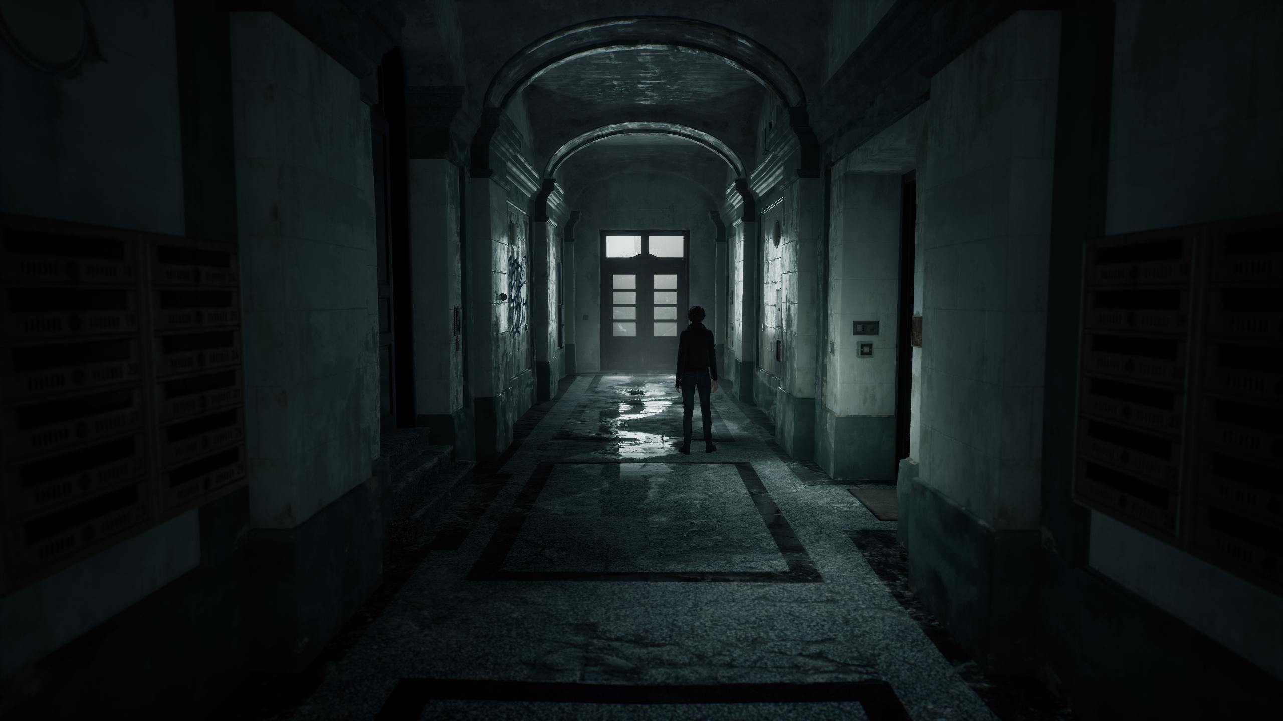 I’m only the most minor fan of horror, and I like it only in small doses spaced far apart. I don’t seek out scary games and I’m not big on major spooks, so I need a strong narrative to entice me to engage with the things that go bump in the dark. This is something that stands out immediately about The Medium; from the very first moments exploring the apartment of the protagonist Marianne’s deceased surrogate father, it is invested in telling a story worth listening to. Marianne’s melancholy, curious voice over serves as a grounding point for the player as they come to know about the world they find themselves in, Marianne’s abilities, and her place in that world. The very first scene exploring Jack’s now-abandoned apartment while preparing for his funeral sets the stage for the way the game uses strong environmental art to show you what’s happening in addition to what the dialog tells you. It’s a moody, often dark experience that uses light as punctuation to the isolating and pensive sensations of being left to explore forgotten places.