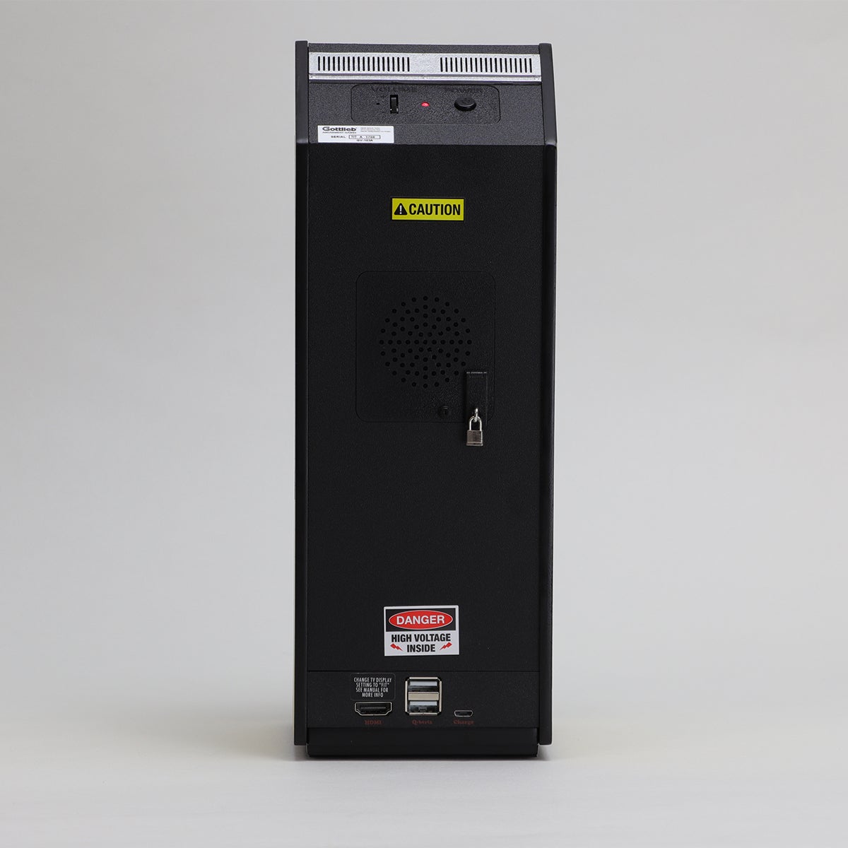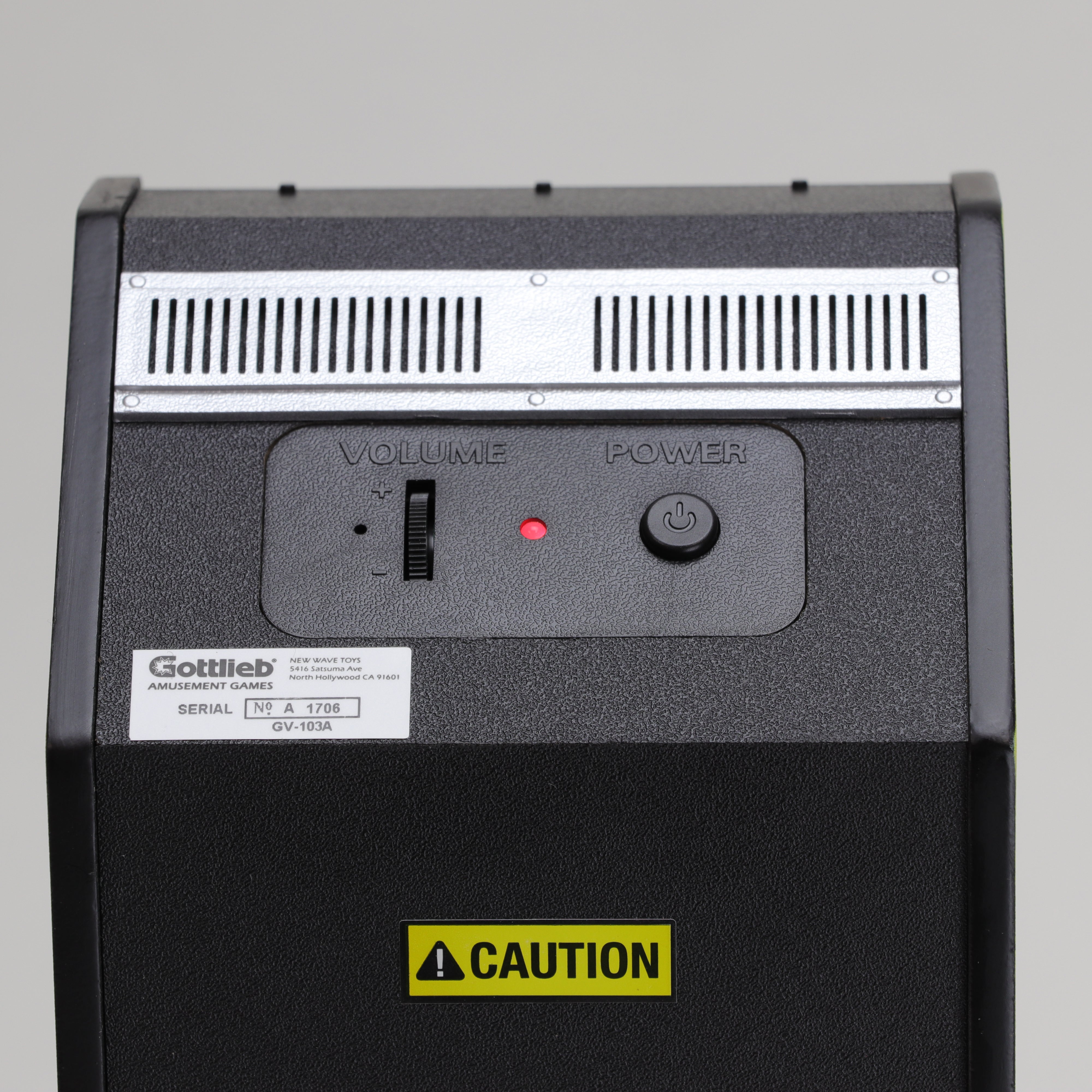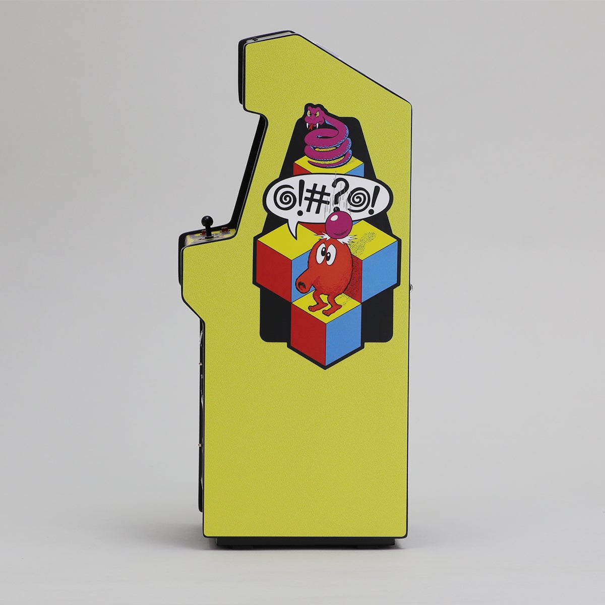 The Q*bert x RepliCade Standard Edition is 1/6-scale, fully playable replica of the classic Q*bert arcade cabinets. Modeled after the classic yellow Q*bert cabinets traditionally seen in arcades, Q*bert x RepliCade includes both the original game and the previously unreleased Q*bert sequel, Faster Harder More Challenging Q*bert. It is outfitted with meticulously developed details such as the fully functional knocker coil that thumps when Q*bert falls, a diagonally mounted four-way joystick, and miniaturized control panel buttons.