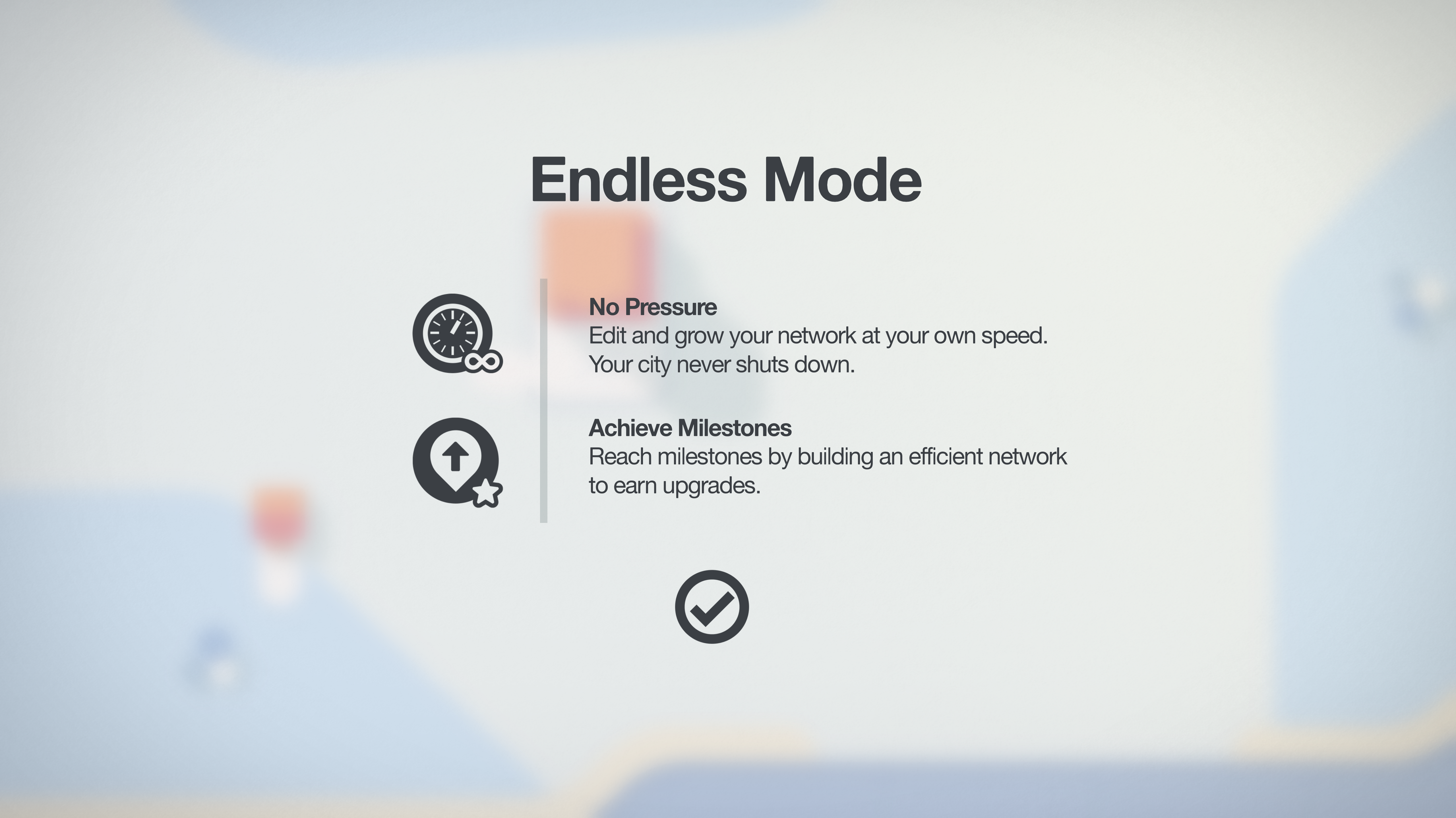 Transform 15 iconic cities like Tokyo, Lisbon, and Los Angeles into a canvas of artistic roadwork and traffic efficiency in Endless Mode, the most requested community feature to date. Start a new city in Endless Mode or choose to continue after a Game Over for a chance to build the metropolis of your dreams. Play at your own speed without the threat of the city ending before you want it to, earning upgrades along the way by achieving milestones and building an efficient city.