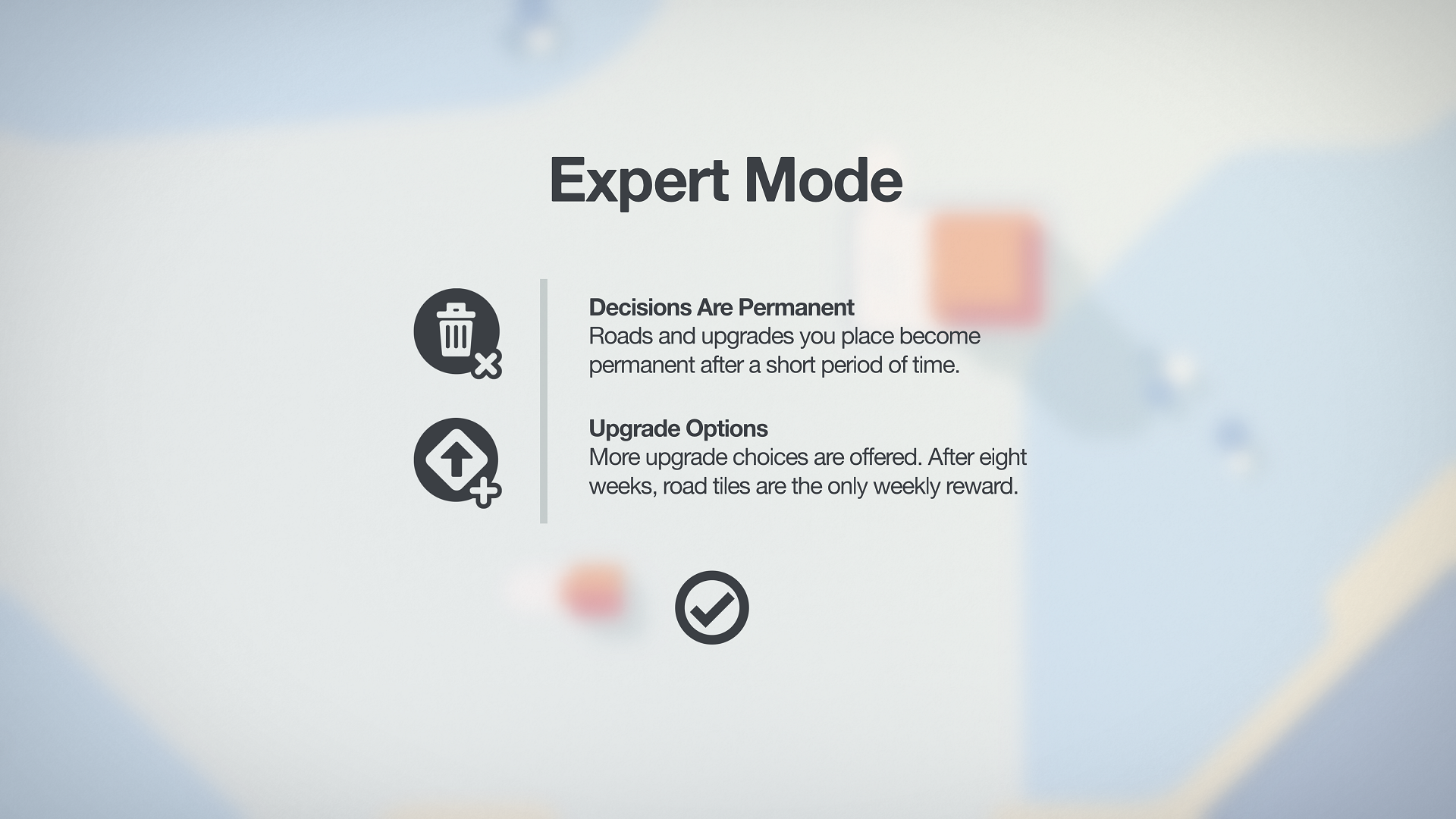 More quality-of-life improvements requested by the community will accompany The Endless & Expert Update. Discover a new multi-level manual zoom option to choose your preferred way to draw roads across the city on every platform, and make well-informed decisions with the ability to view your current city layout before choosing an upgrade at the end of each in-game week.