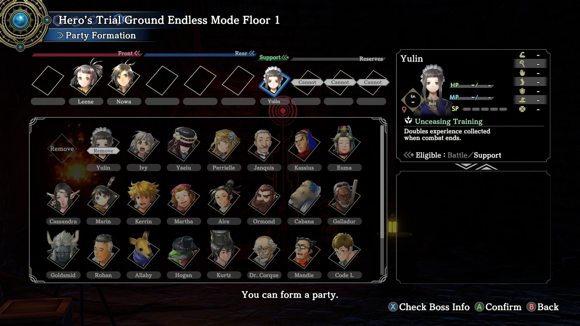 In some ways, I think it is the intended design since Eiyuden Chronicle: Hundred Heroes has a sort of “shared XP” system. Even the lowest character can catch up to the rest of your squad just by defeating a couple of monsters in an overworld battle. Take it, for instance, that most of your party is around level 50 and one character is level 20. It takes around 2 to 5 battles to get that one low-level character to level 45 or 47. So, do not be afraid of swapping out characters. If anything, I incentivize you to do so you can learn more about them.