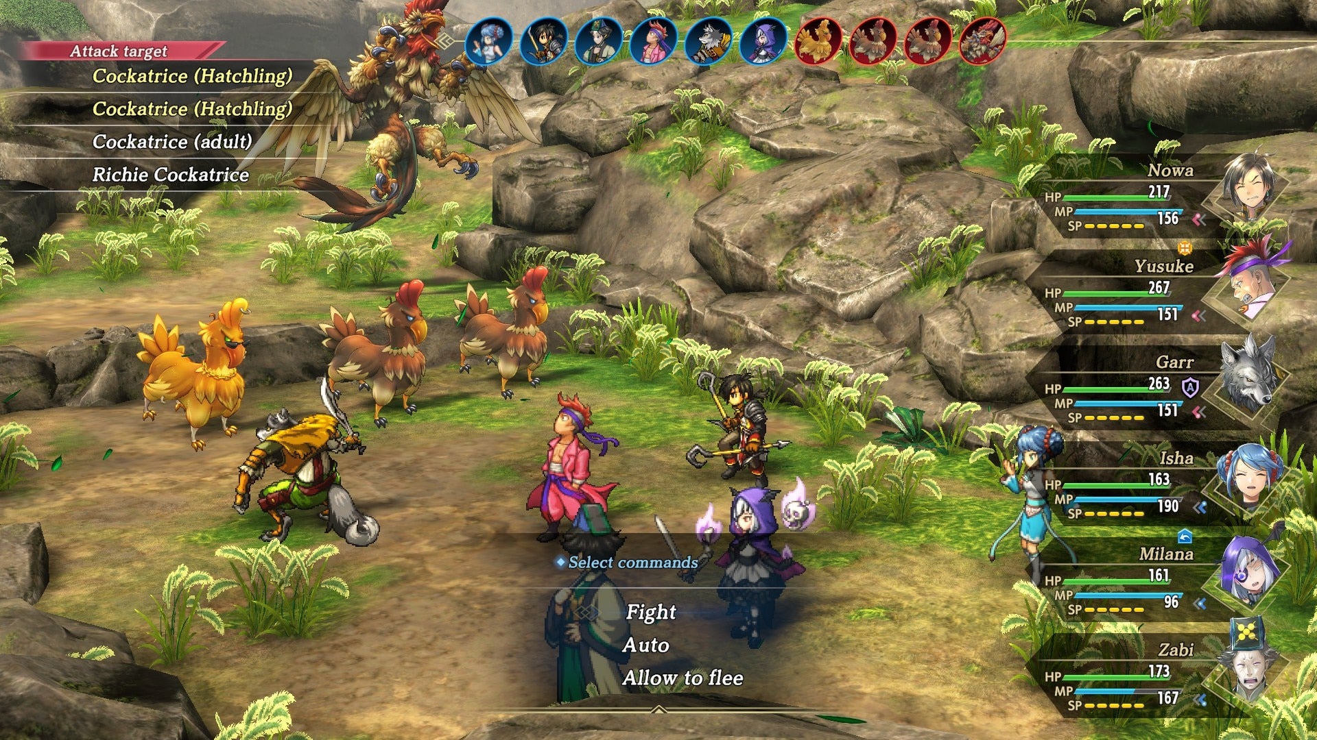 The battles themselves, outside major boss battles, aren’t hard per se. While I played on hard, Eiyuden Chronicle: Hundred Heroes does the “the enemy has bloated HP” in most situations. The game offers an “auto battle mode” that can be slightly customized, and I did make a good use of it in dungeons to get through them at a reasonable pace.