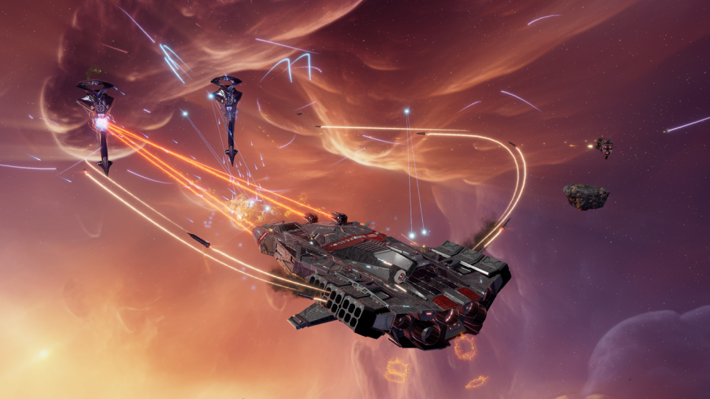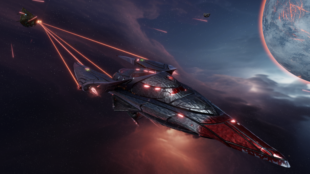 - TEC Primacy – Khevarkov Modular Battleship: A high-speed strike vessel with customizable hardpoints for railguns, missiles, or hangar bays.