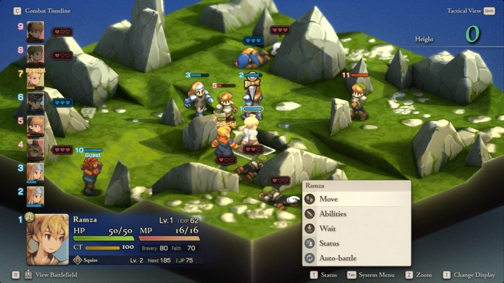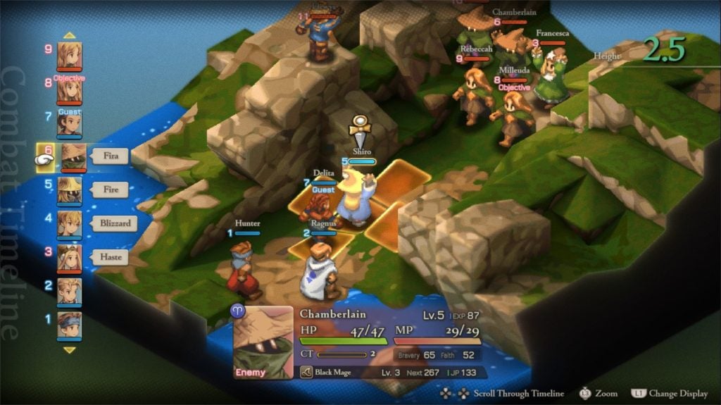 On the gameplay side, battles have greatly improved both in readability — allowing you to use a quasi-top-down view making it easier to plan your attacks, flank an enemy, or use height to your advantage, Square Enix also included a turn order view — which to me is the biggest and best inclusion. I yearned for this feature for years ever since it became commonplace in SRPGs, and the more I played newer SRPGs, the harder it was to go back to “Final Fantasy Tactics”.